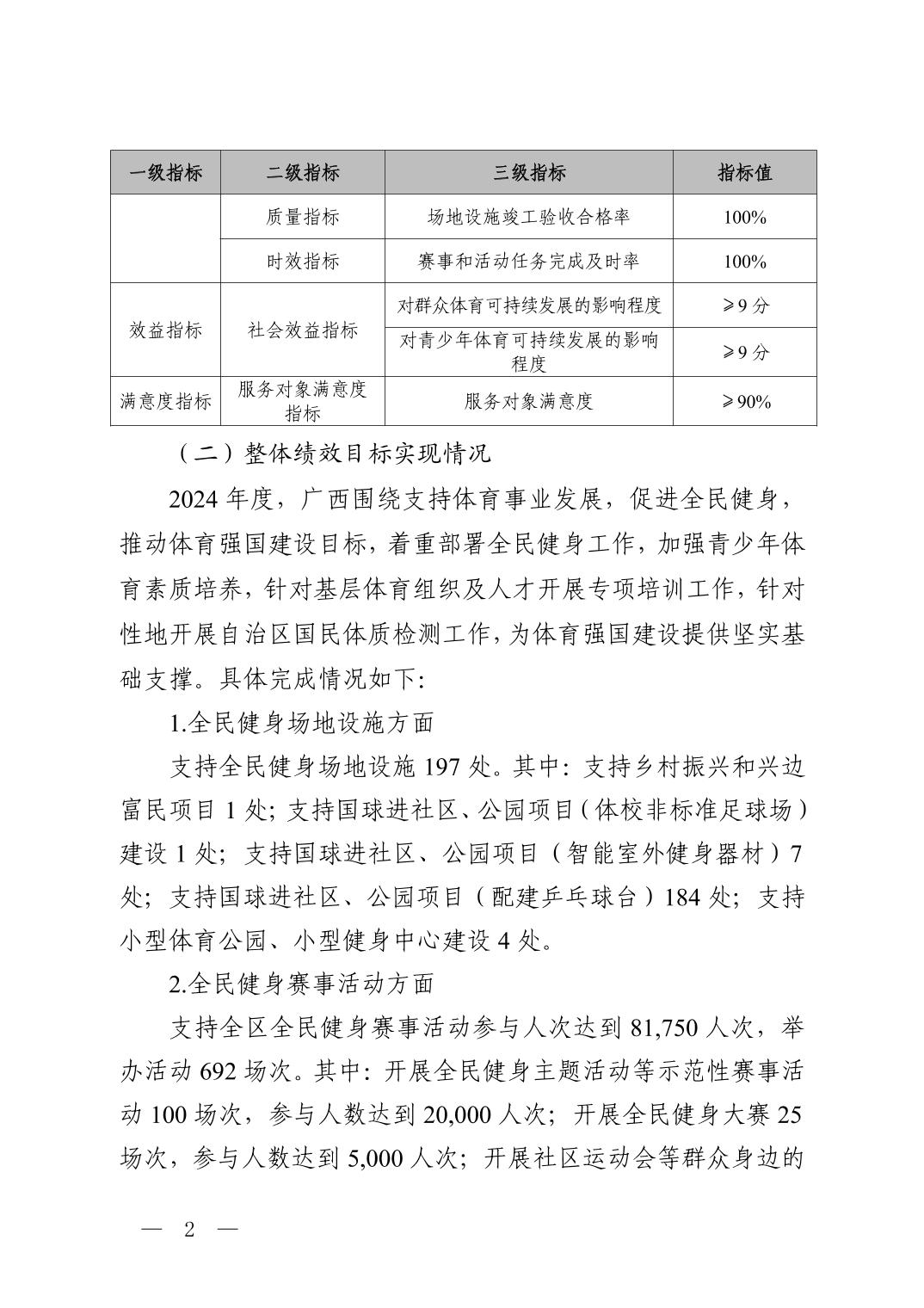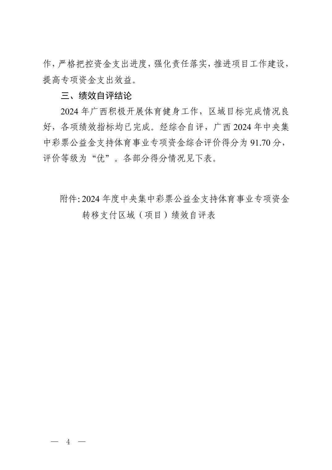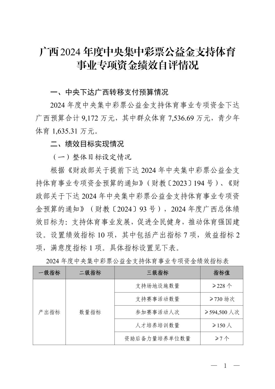 广西2024年度中央集中彩票公益金支持体育事业专项资金绩效自评情况
