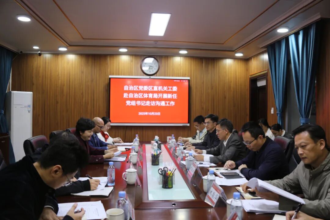 10月23日,自治区党委区直机关工委分管日常工作的副书记罗荣莉一行到比分足球 开展走访沟通及“两随机”走访指导机关党建工作,双方就如何推动机关党建工作高质量发展进行座谈交流。