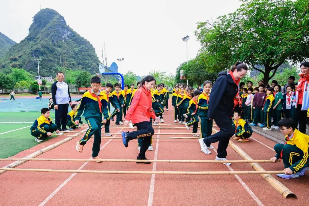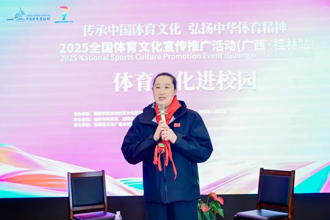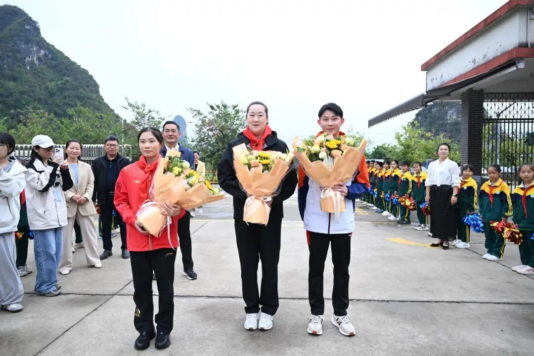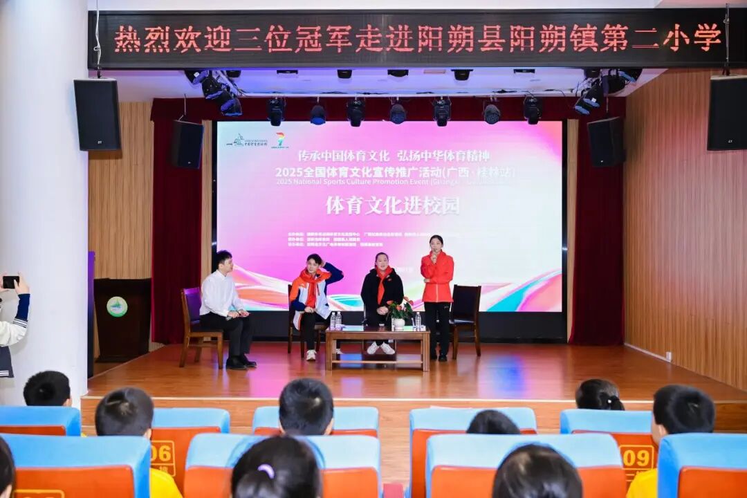近日,2025全国体育文化宣传推广活动(广西・桂林站)体育文化进校园在阳朔县阳朔镇第二小学温情启幕。2004年雅典奥运会女子排球冠军宋妮娜、第29届世界蹦床锦标赛男子网上团体冠军何宇翔、2022年全国蹦床锦标赛女子蹦床冠军丁一洺,三位冠军共同走进校园,与师生们共赴体育文化之约,让中华体育精神在校园落地生根。