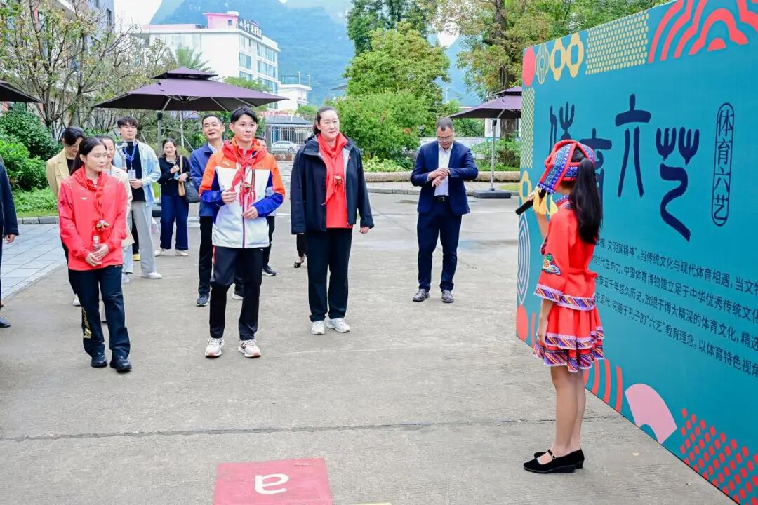 同学们详细讲解,古代六艺与如今“德智体美劳”全面发展的理念一脉相承。“射”是锻炼专注力的射箭之术,“御”是考验协作与技巧的驾车之能,而这些古老的体育智慧,早已融入壮族的民俗体育中。小小的展板串联起古今体育文化,让冠军们连连称赞。