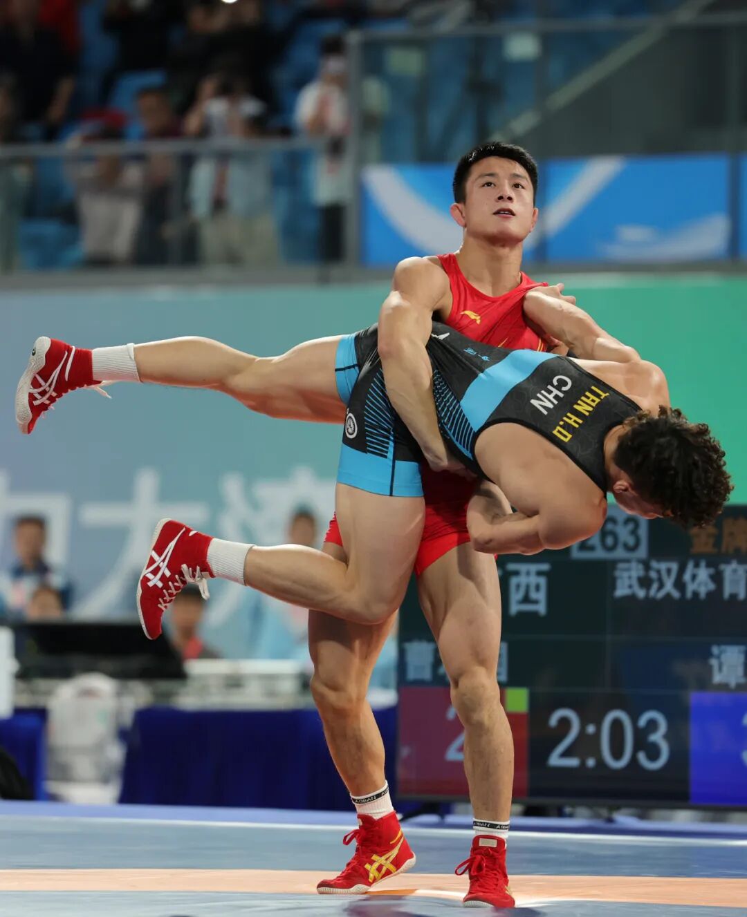 古典式摔跤60公斤级运动员曹利国,巴黎奥运会银牌得主,在经历了奥运会的淬炼后,技术更精进心态更沉稳,面对裁判多次不利的判罚和落后局面,在决赛中逆转战局,用实力证明这枚全运会金牌实至名归。