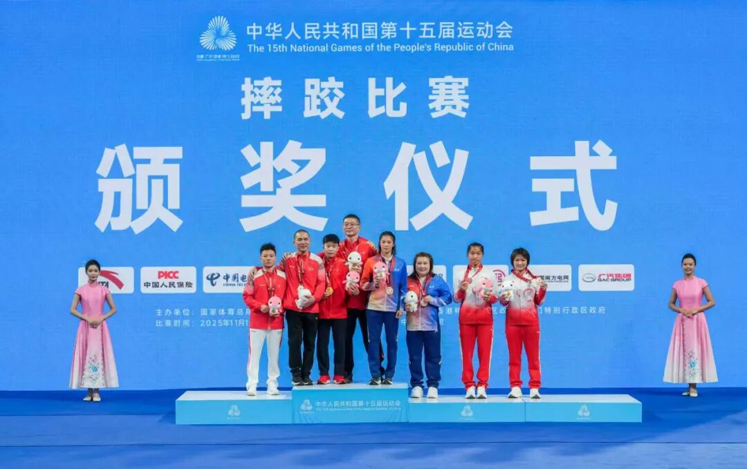 11月12日,广西摔跤队结束了第十五届全运会的征程,以3金1银1铜的成绩荣耀凯旋,在大湾区的赛场上展示了广西运动员的“狼兵血性”,让“重竞技 有血性 打不垮 敢胜利”的口号在赛区高呼。