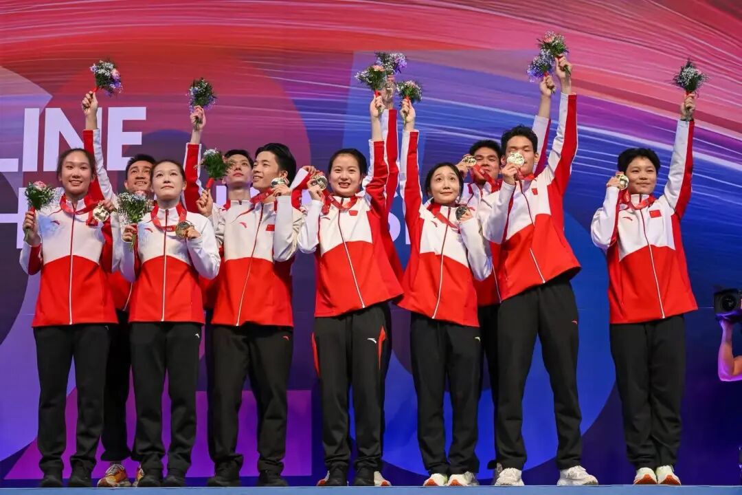 中国蹦床队获得第38届世界蹦床锦标赛混合全能团体冠军