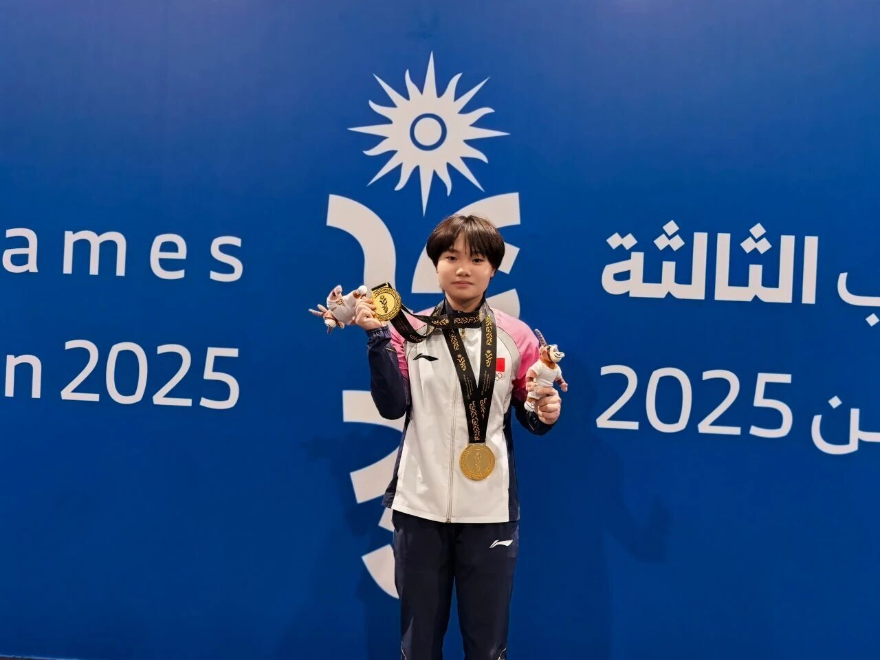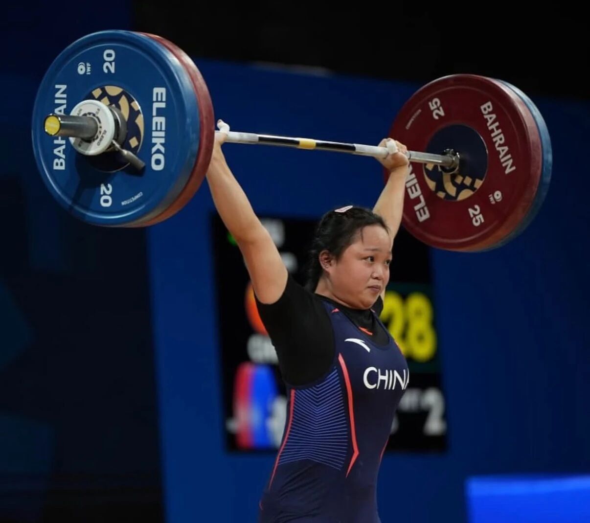 蓝欣怡成为本届亚青会举重项目的首位“双金”得主。赛事组委会供图