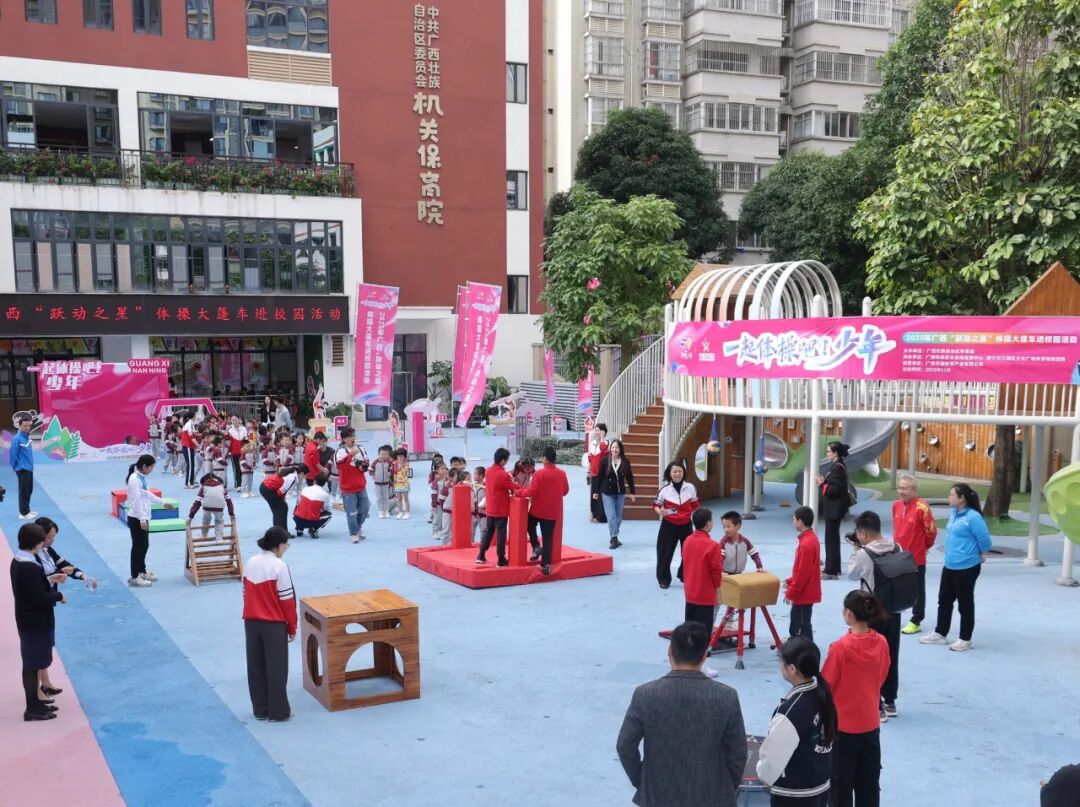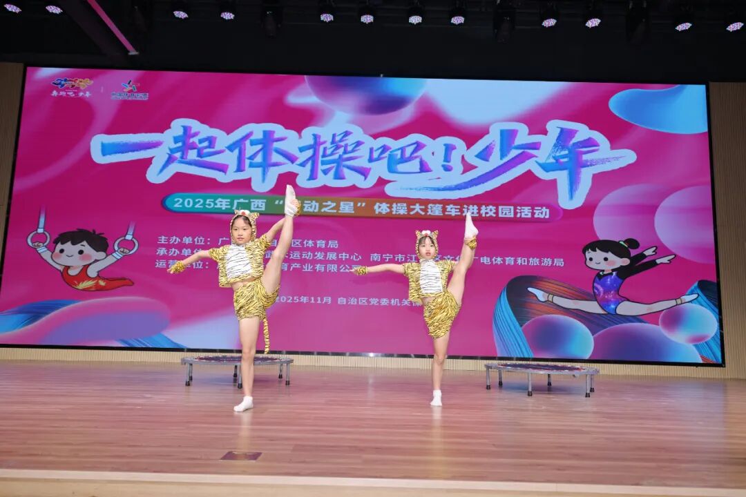 11月11日,2025年广西“跃动之星”体操大篷车进校园活动在自治区党委机关保育院拉开序幕,广西体操专业运动员们在项目展演、教学等丰富的活动内容中为自治区党委机关保育院的孩子们送去了一堂生动有趣的“体育课”。接下来,活动还将陆续在多所幼儿园展开,营造广西良好的体操运动推广氛围,为广西体操寻找下一个“冠军”夯实基础。