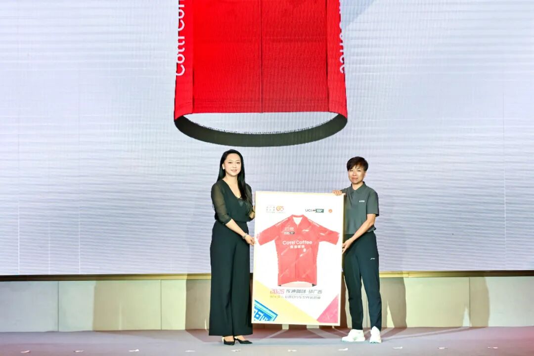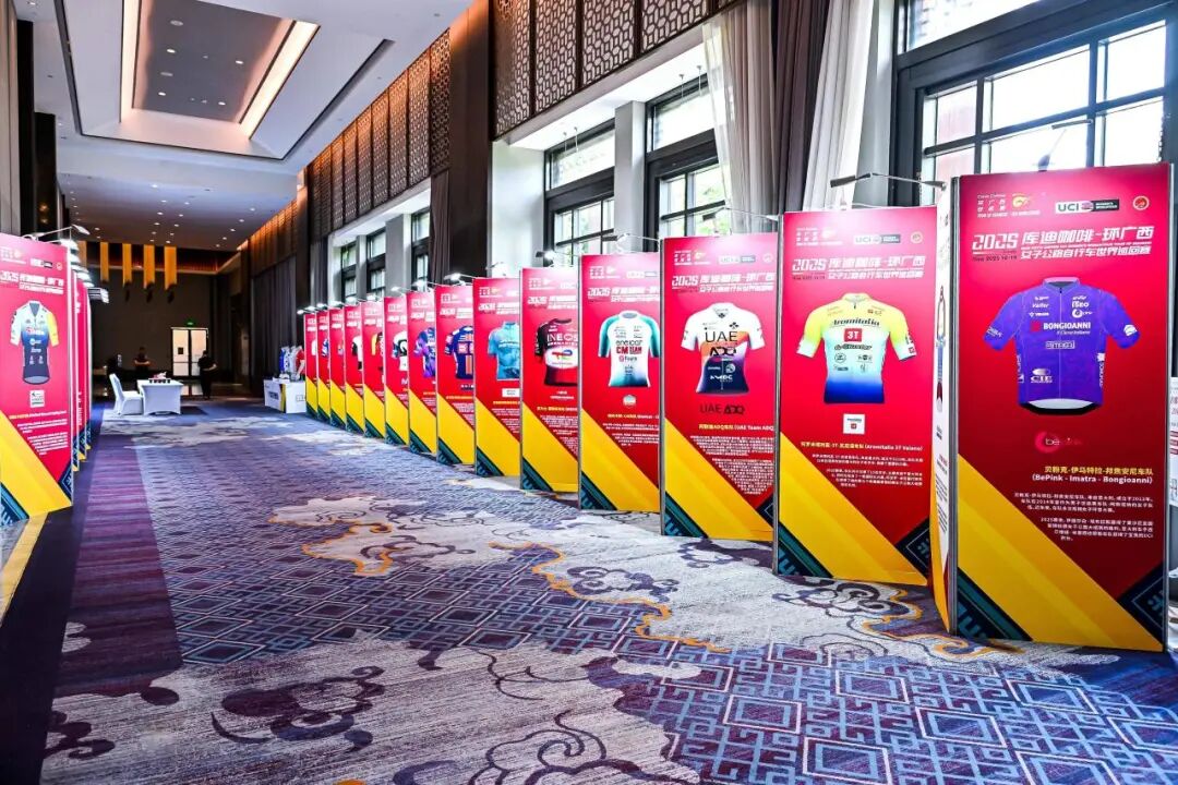2025环广西世巡赛设四色领骑衫——库迪咖啡红色领骑衫代表总冠军,李宁白色领骑衫代表最佳年轻车手,百岁山圆点衫代表爬坡王,北部湾银行蓝色领骑衫代表冲刺王。发布会上,张梅代表赛事组委会向冠名赞助商库迪咖啡,赛事官方合作伙伴李宁、百岁山、北部湾银行授予领骑衫。