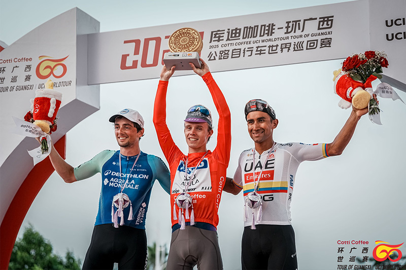 随着南宁城市赛段落下帷幕,杰科-埃尔奥拉车队的保罗·达博(Paul Double)凭借在弄拉皇后赛段的卓越表现,最终夺得象征总成绩冠军的“库迪咖啡”红色领骑衫。