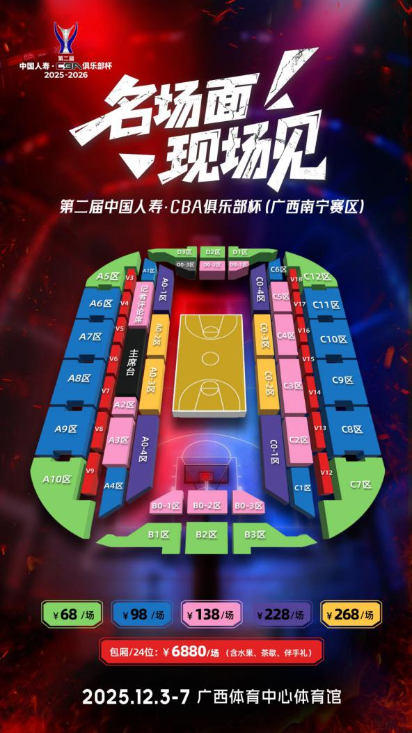 第二届中国人寿·CBA俱乐部杯(广西南宁赛区)赛事门票今日正式公布,全网售票通道已经开启。本届赛事设68元、98元、138元、228元、268元五个票档,为球迷提供多元观赛选择,共同见证这场中国篮球的巅峰对决。