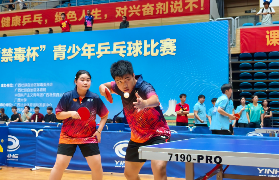 近日,由自治区禁毒委、比分足球 、共青团广西区委、广西大学联合主办的第二届广西“禁毒杯”青少年乒乓球比赛在广西大学综合体育馆正式开赛。