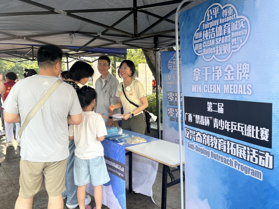 为进一步强化青少年运动员“禁毒+反兴奋剂”双重底线意识,广西反兴奋剂中心紧扣以 “热爱运动,拒绝毒品,拒绝兴奋剂” 为核心的赛事主题,同步开展反兴奋剂教育拓展活动。通过反兴奋剂知识答题与发放宣传物料的形式,向参赛青少年运动员、教练员及运动员家长普及禁毒与反兴奋剂的相关知识,如毒品与兴奋剂之间的关联及其造成的危害等,让“对毒品和兴奋剂说‘不’”的理念深入根植于青少年心中。