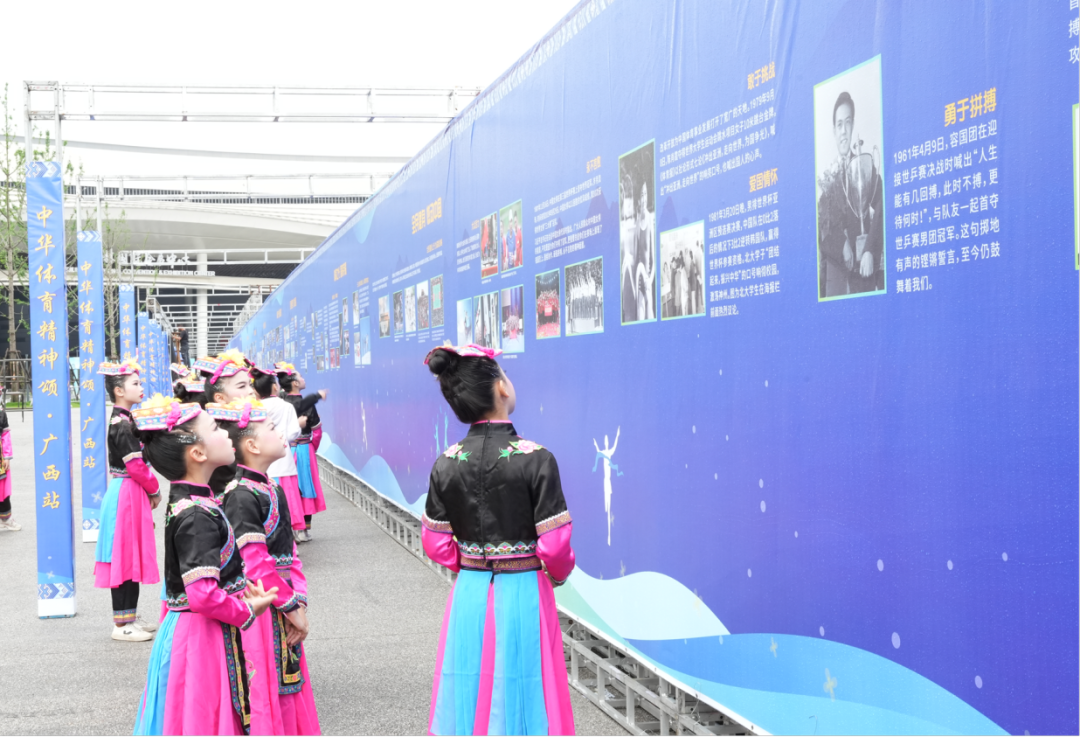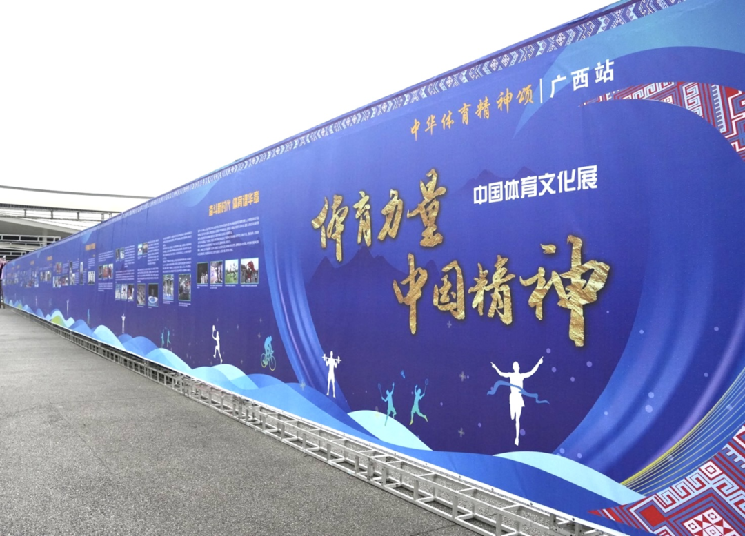 作为活动重要内容之一,会场设置了“体育力量 中国精神——体育文化展”全国巡展|广西站展区。展览分“奋斗新时代、体育谱华章”“体育之光、国家荣耀”“非凡冬奥、共享未来”等篇章,全景展示中国体育由小变大、由弱到强的发展历程,展现一代代中国体育人对中华体育精神的执着与坚守、奉献与传承。
